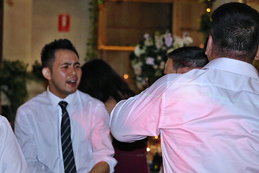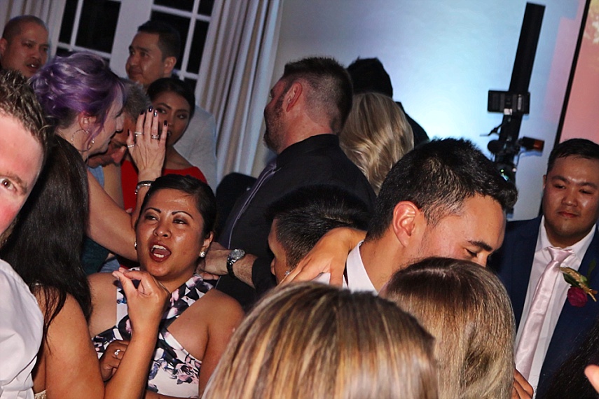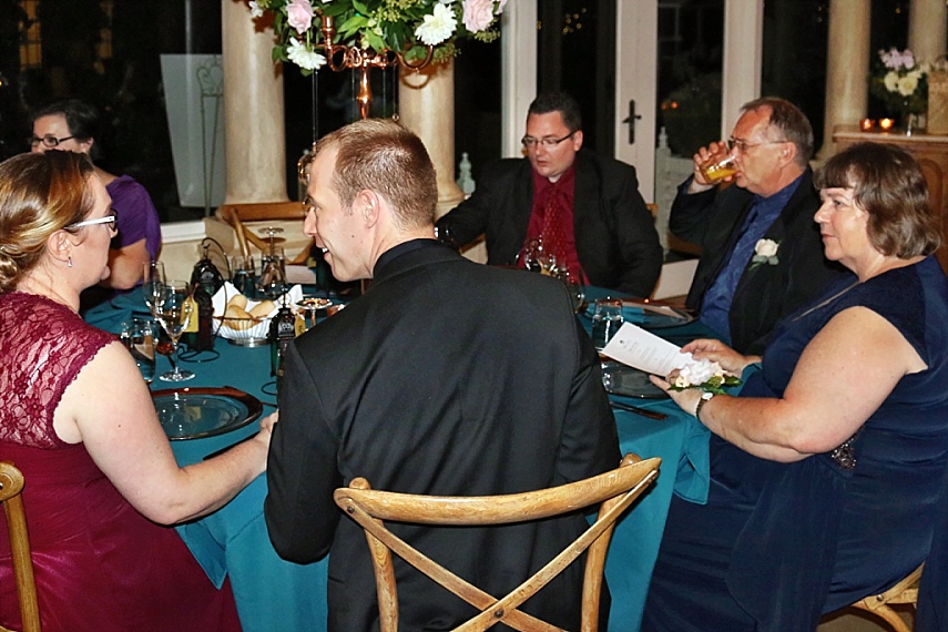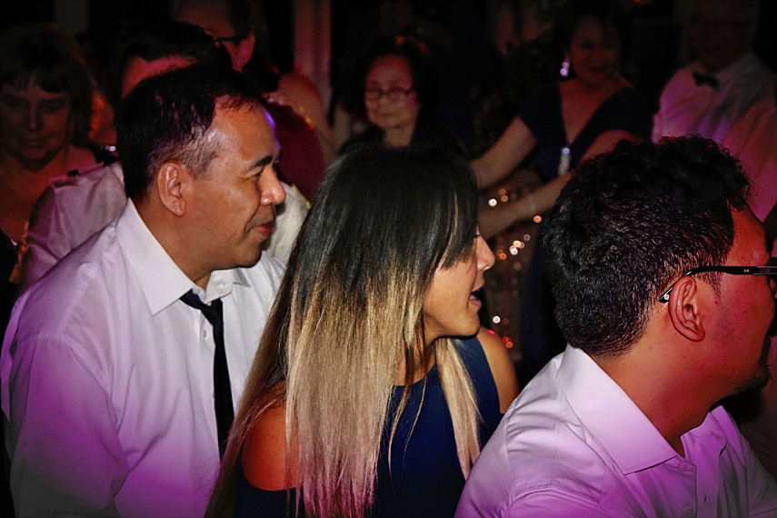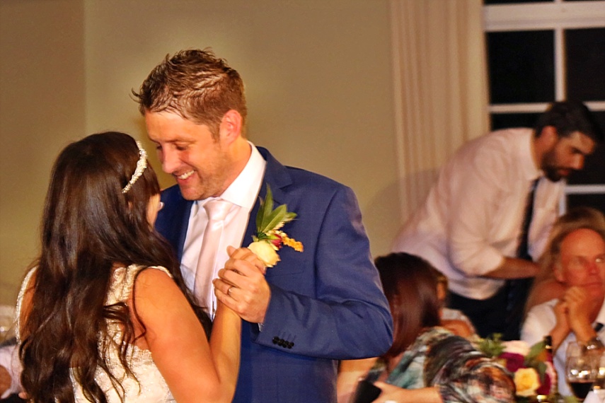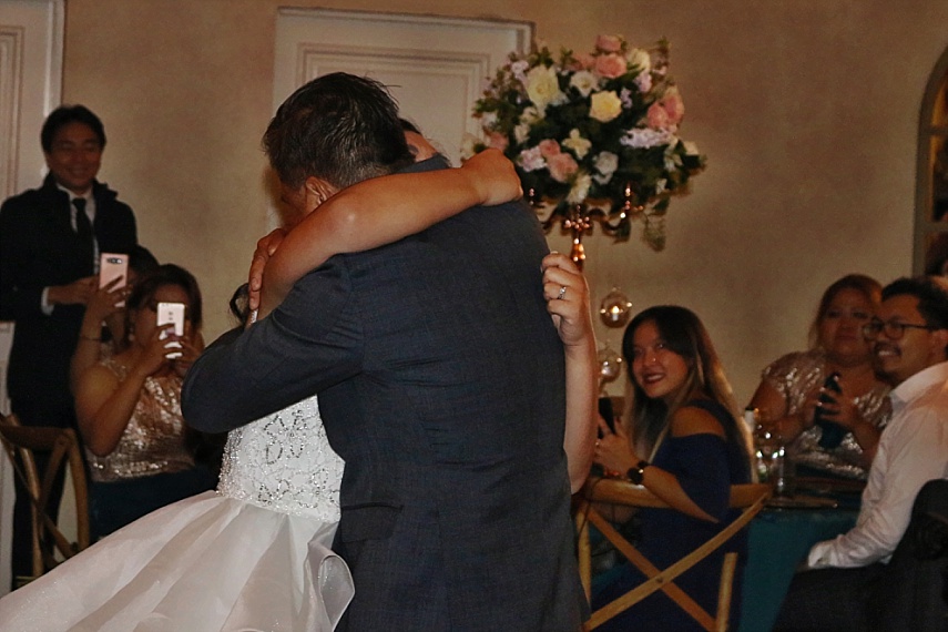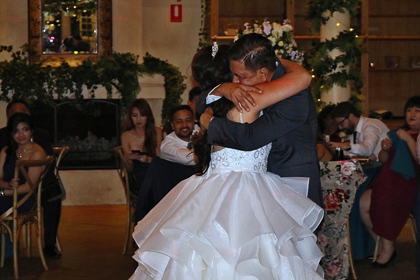 Following the entree, it was time for the first set of speeches. First up there was some beautiful words from best man Steven. Next up was something that had been in the planning for many months. Joyce was aware that there would be a surprise around the time of the father daughter dance, but was unaware of any of the details including the song. This is how it all played out. After introducing Joyce’s Dad, Norgene for his wonderful speech, he invited Joyce’s little brother Jared to the microphone (the surprise). Jared’s speech had Joyce overcome with emotion and the happy tears flowed as Jared recounted his beautiful relationship with his older sister including how she would occasionally sing the Carpenters song, “Close To You” to him since birth and this song had become his personal lullaby – the song would soothe him when he cried and helped him get to sleep. He also said that the song was dear to his heart and anytime he heard it, it would never fail to make him happy, feel peaceful and very much loved. Jared finished with these following words; “It is my wish that you feel the same tonight and may all the happiness, peace and love stay with you forever…..(At this point music commenced to play)..Dana, please always be a Big Sister to me as I will be the not-so-little brother that will always look up to..YOU”. The music was from the Carpenter’s song “YOU” which was then performed by Joyce’s friend, Tmara and Jared (bonus surprise). As this was happening Joyce and her Dad with tears of happiness flowing and holding each other very tightly shared a very meaningful father daughter dance – a truly beautiful and emotional moment which I am certain they will always remember!