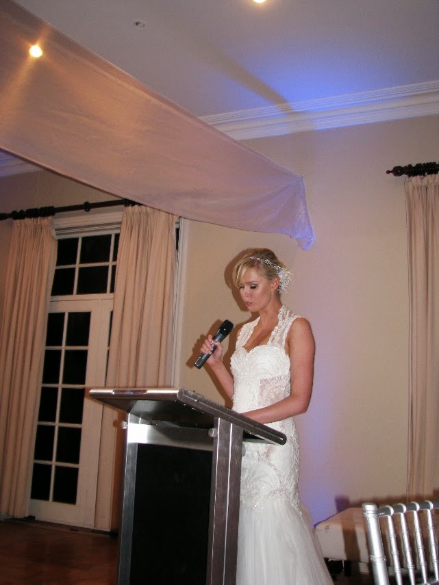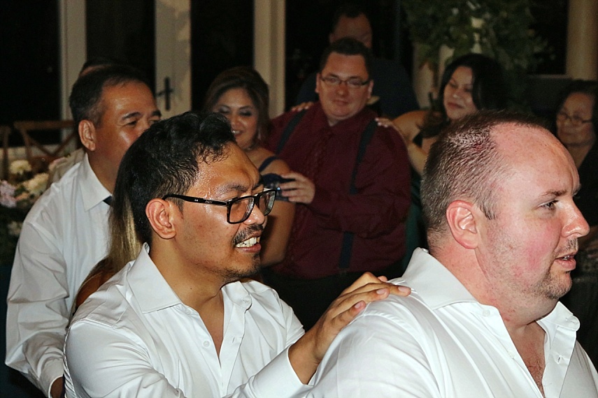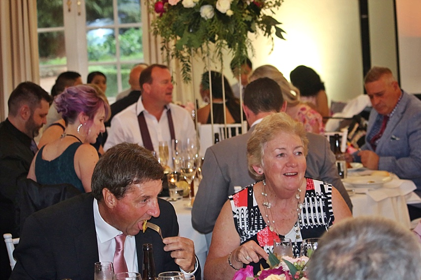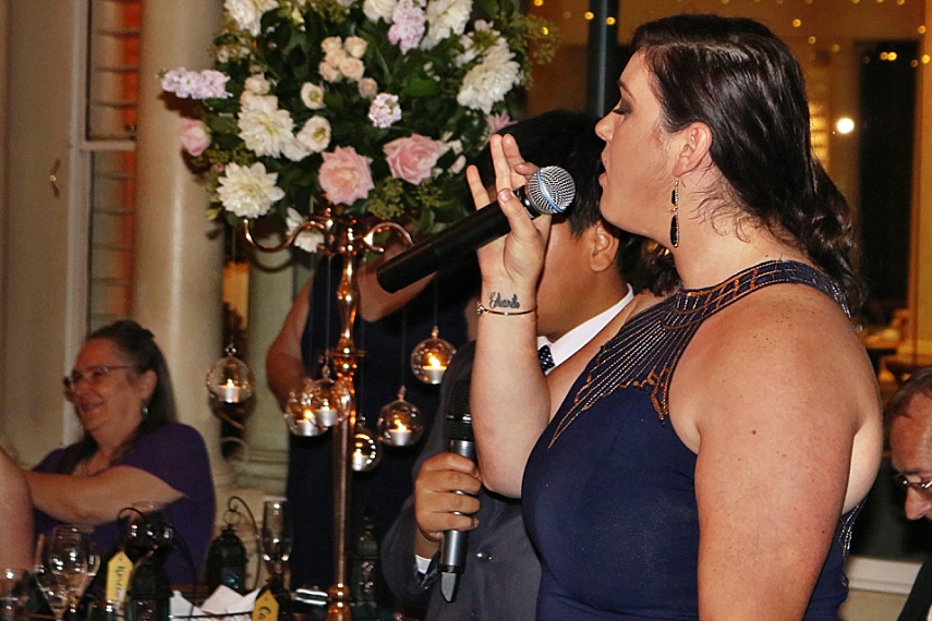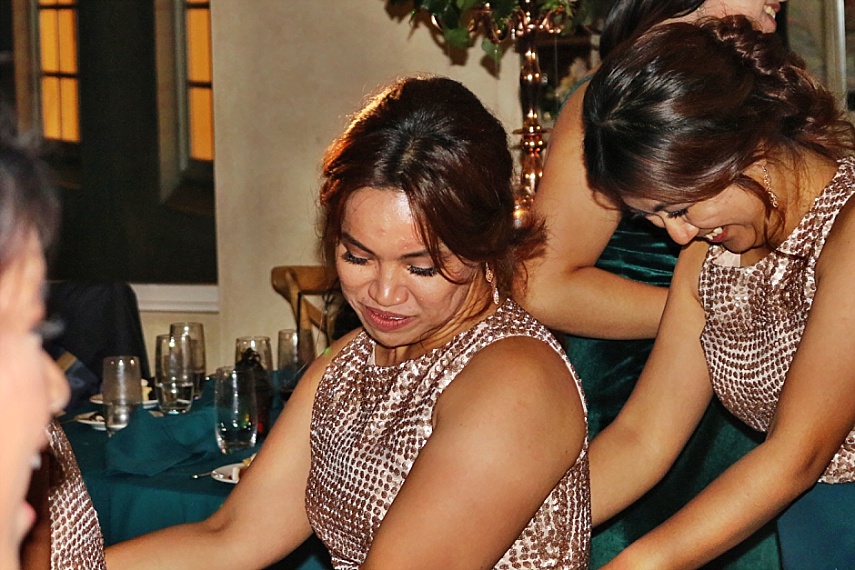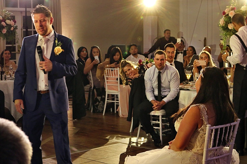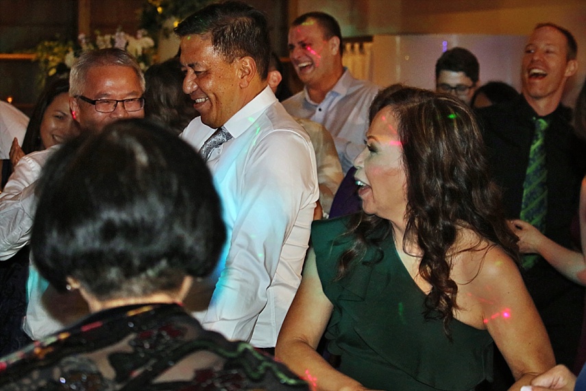 Following the entree, it was time for the first set of speeches. First up there was some beautiful words from best man Steven. Next up was something that had been in the planning for many months. Joyce was aware that there would be a surprise around the time of the father daughter dance, but was unaware of any of the details including the song. This is how it all played out. After introducing Joyce’s Dad, Norgene for his wonderful speech, he invited Joyce’s little brother Jared to the microphone (the surprise). Jared’s speech had Joyce overcome with emotion and the happy tears flowed as Jared recounted his beautiful relationship with his older sister including how she would occasionally sing the Carpenters song, “Close To You” to him since birth and this song had become his personal lullaby – the song would soothe him when he cried and helped him get to sleep. He also said that the song was dear to his heart and anytime he heard it, it would never fail to make him happy, feel peaceful and very much loved. Jared finished with these following words; “It is my wish that you feel the same tonight and may all the happiness, peace and love stay with you forever…..(At this point music commenced to play)..Dana, please always be a Big Sister to me as I will be the not-so-little brother that will always look up to..YOU”. The music was from the Carpenter’s song “YOU” which was then performed by Joyce’s friend, Tmara and Jared (bonus surprise). As this was happening Joyce and her Dad with tears of happiness flowing and holding each other very tightly shared a very meaningful father daughter dance – a truly beautiful and emotional moment which I am certain they will always remember!