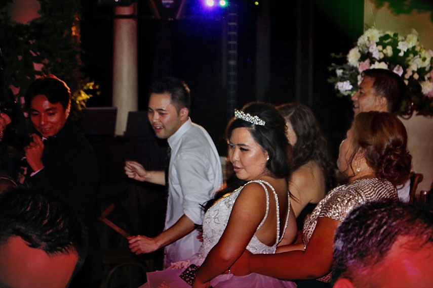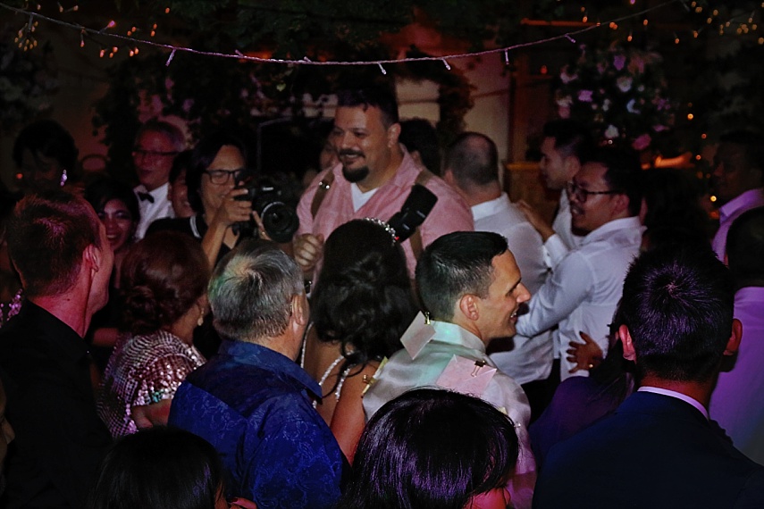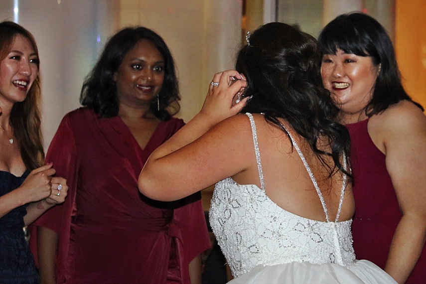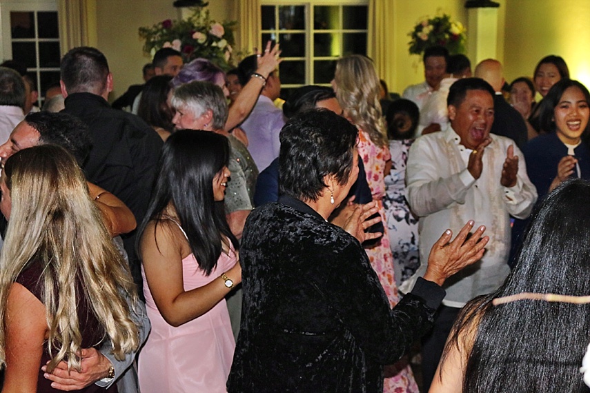 Dessert followed, heartfelt speeches from Joshua’s Dad, Tony and Joshua himself. The cutting of the wedding cake and it was now time to party! And party they did…..even Joyce’s grandmother was on the dance floor! Time goes quickly when you are having fun and before we knew it it was time for the bouquet toss, the honeymoon dance, one last farewell dance where everybody naturally formed a conga line of sorts and we then bid farewell to Joyce and Joshua as they departed to begin the rest of their lives together!