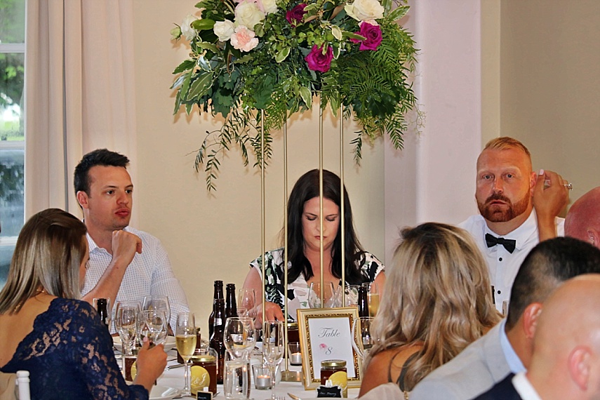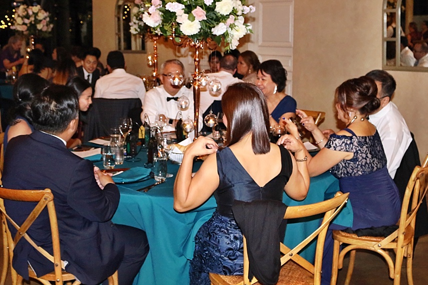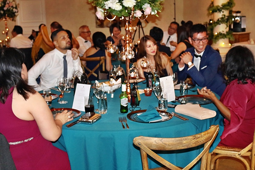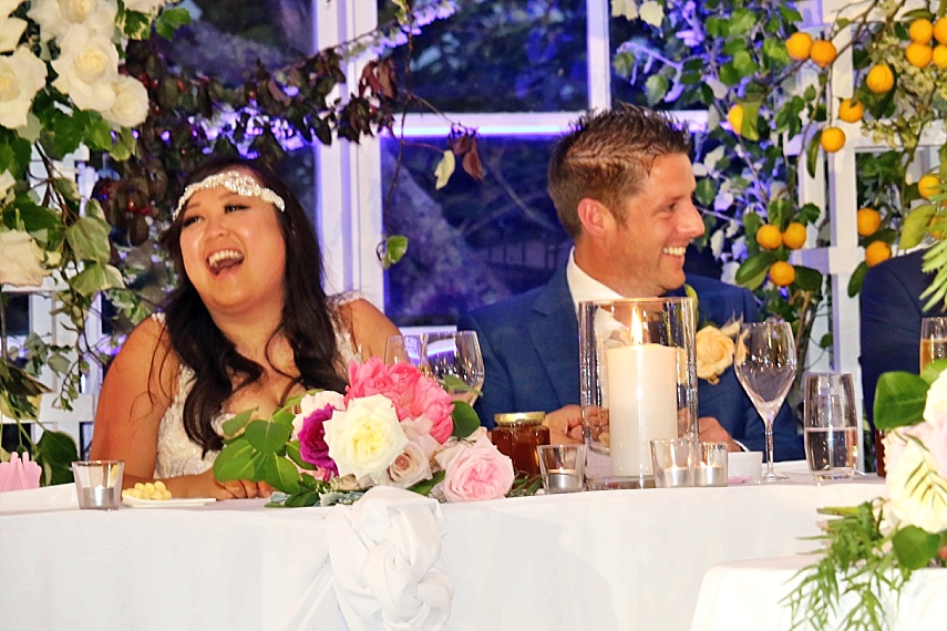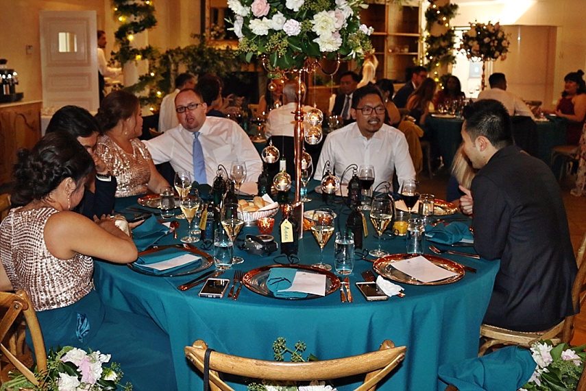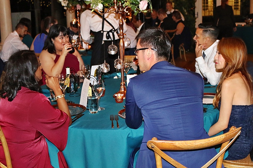 A little later, it was time for guests to make their way into The Orangerie Restaurant, which had been stunningly decorated by Jewel Phon Flowers & Styling to reflect Joyce and Joshua’s ‘Enchanted Forest” theme. Joshua welcomed everybody, thanked those that had traveled to be a part of their day and encouraged everybody to have a wonderful time.