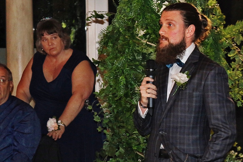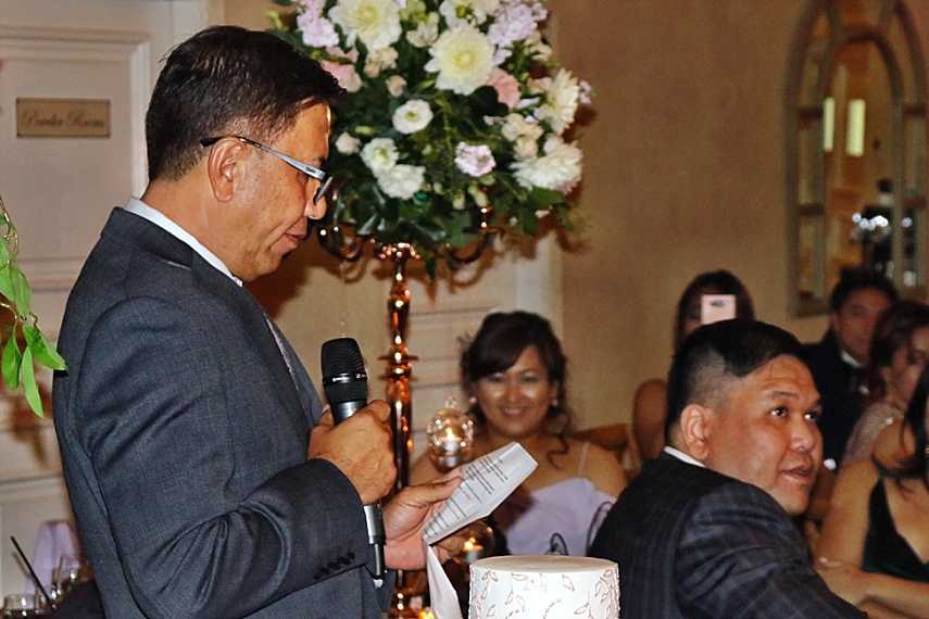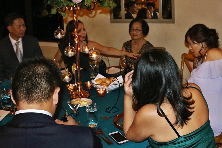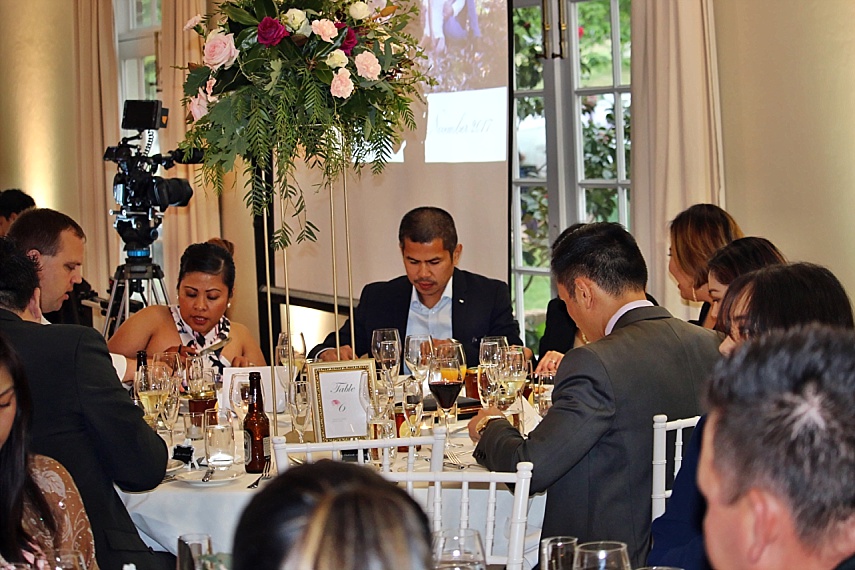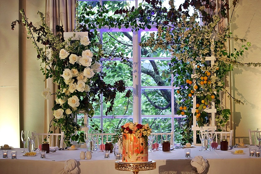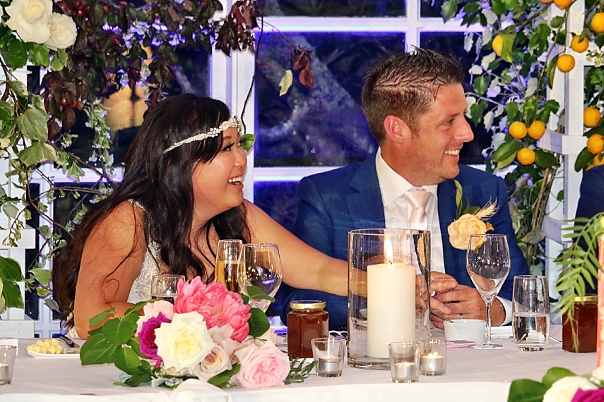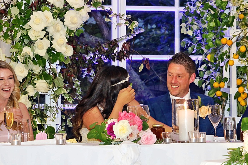 A little later, it was time for guests to make their way into The Orangerie Restaurant, which had been stunningly decorated by Jewel Phon Flowers & Styling to reflect Joyce and Joshua’s ‘Enchanted Forest” theme. Joshua welcomed everybody, thanked those that had traveled to be a part of their day and encouraged everybody to have a wonderful time.