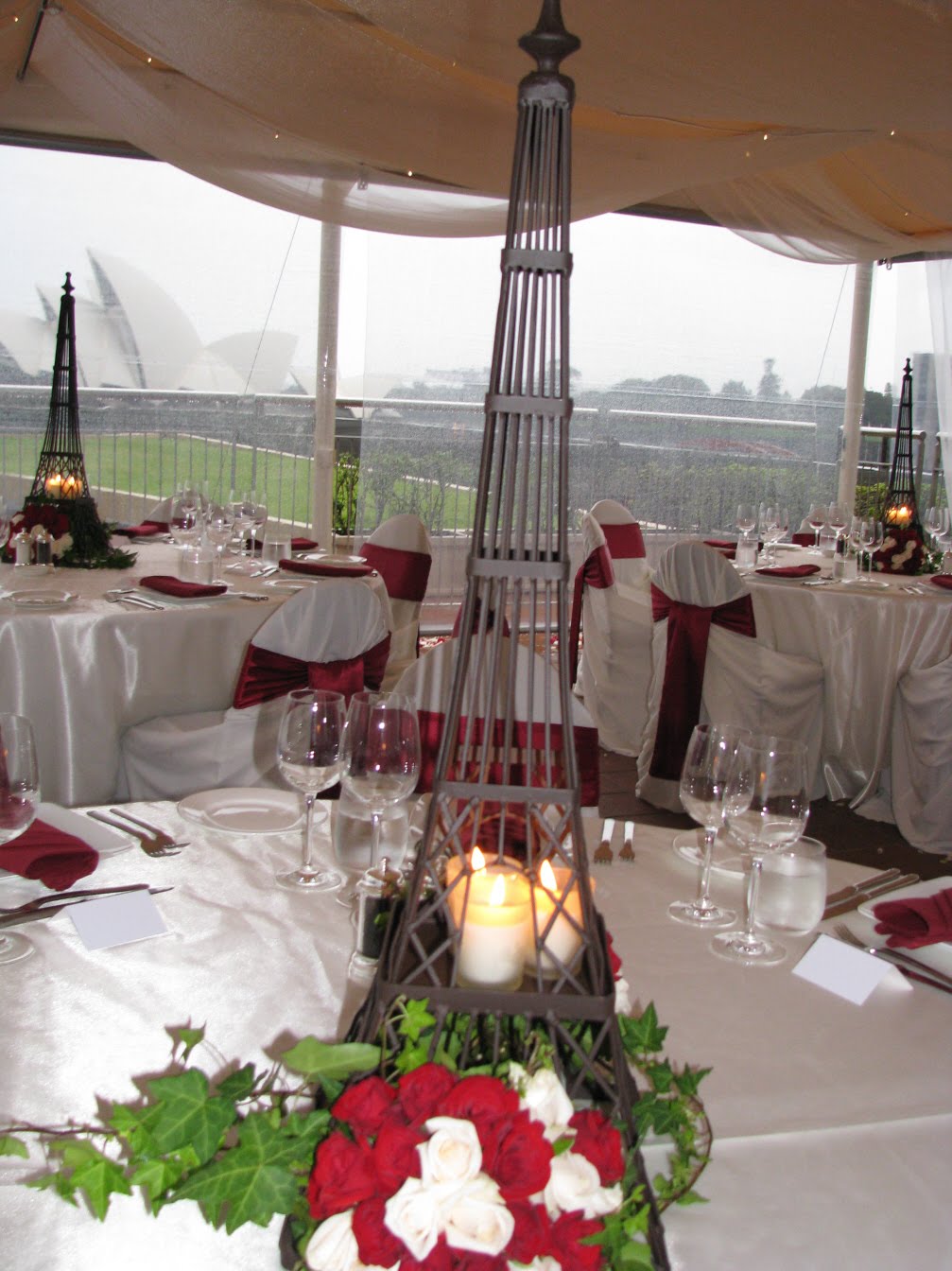 When guests returned to the rooftop area, it had been transformed into a beautiful reception area creating a little bit of Paris in Sydney. The Eiffel Tower centrepieces with the Sydney Opera House in the background reflected the French-Australian fusion that Martine and Marc were seeking brilliantly.