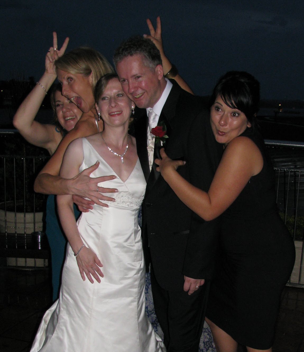 Following the ceremony, guests made their way to the ground floor for pre-dinner drinks and canapes in the Hotel’s Club Bar, whilst Martine and Marc, along with their wedding party had photographs around the Hotel and Harbour. As there was a break in the rain, it presented the perfect opportunity to sneak in a group photo.