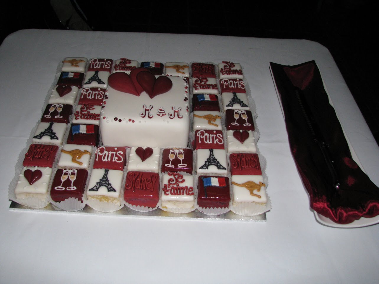 In keeping with French tradition, a cheese course was then served to complete the meal. It was now time for Martine & Marc’s first dance – another lovely moment to a beautiful French song from Le Roi Soleil. At the conclusion of the dance, guests were surprised when the lovely dancers from Deja Vu Cabaret ran in and performed the Can Can. It was then time to party. A little later in the evening, the dancers performed another routine, Marc danced with his mum and much more partying with nearly all the guests on the dance floor.