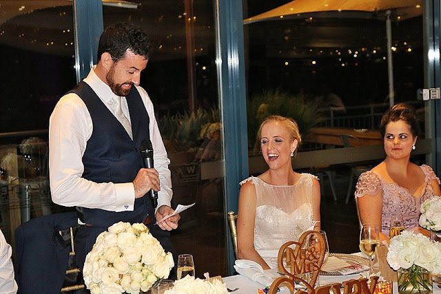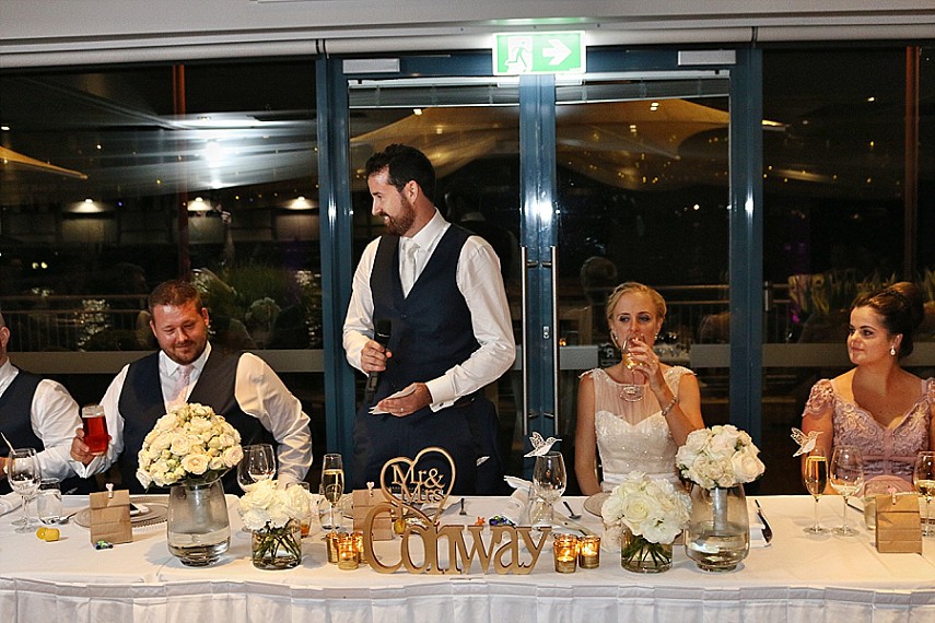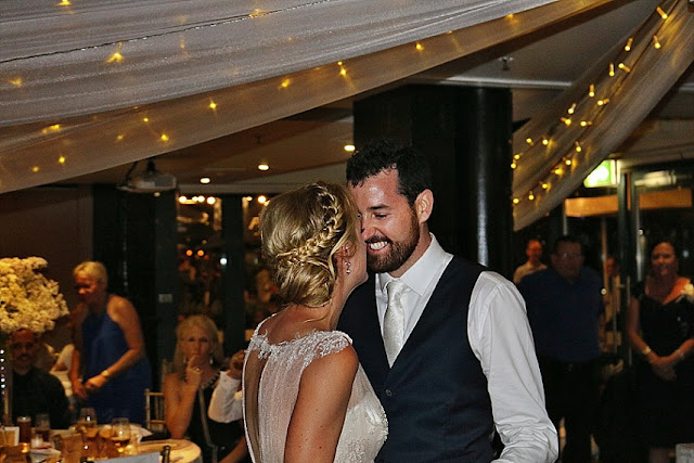 Meanwhile, guests were treated to refreshments and canapés. A little while later we welcomed our newlyweds and their wedding party. A delicious entrée, speeches by the two dads, Mark and Brett, the father daughter dance, main meal, a few words from the best man, Adam and Aaron, a couple of fun activities, dessert and it was time for the first dance. This was a beautiful moment which I am certain that Jenna & Aaron will treasure forever. It was then party time!! and as you can see from the photographs and video below, they certainly did party!