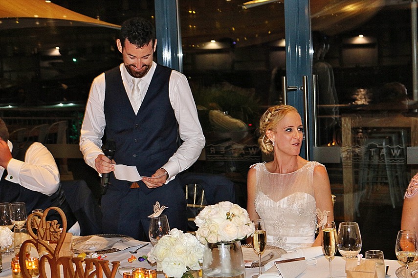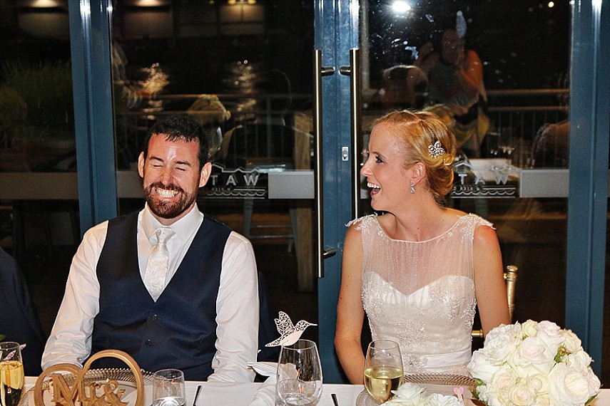 At the end of March 2014, Aaron placed a ring inside a Kinder Surprise, knowing that Jenna always craved chocolate after dinner, organised Thai food for dinner and when Jenna returned from her afternoon Gym ritual, he knew she would ask for chocolate, which she did. This plan almost backfired on Aaron as Jenna could not feel/hear anything in the Kinder Surprise and thought it was empty, but was surprised by an engagement ring. A shocked and speechless Jenna eventually said yes and here we were overlooking beautiful Sydney Harbour at Pier One as Jenna and Aaron became husband and wife.