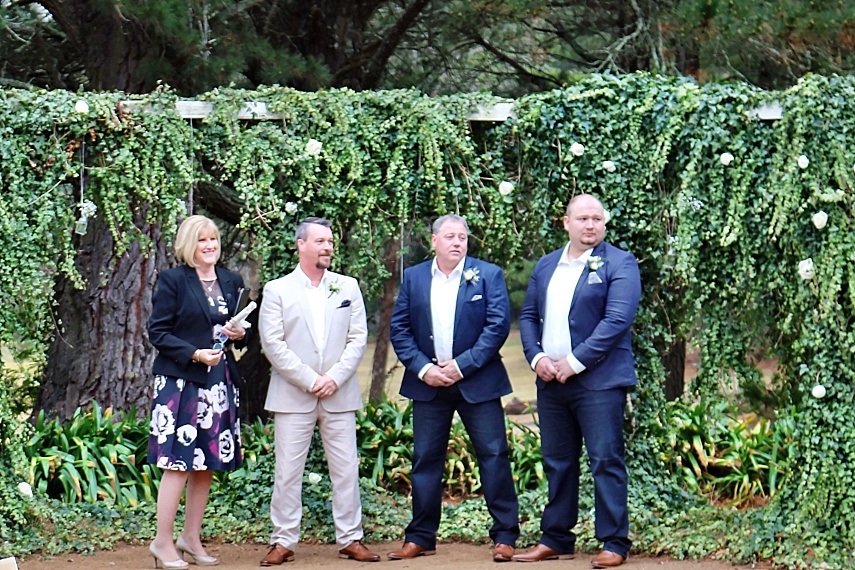 Now, back to the ceremony, as it would happen, the rain eased and stopped, leading up to the ceremony time and the call was made to proceed with the garden location. Everything was going so well, Tania got to walk down the aisle accompanied by her son, Corey. Shane got to witness that wonderful, beautiful moment when you see your bride in her wedding dress walking towards you, there were words of wisdom shared by Tania’s parents, Rob & Jan and Shane’s friends, Dean & Samantha, the guests all gathered witnessing the culmination of one chapter of this love story and the beginning of another.
