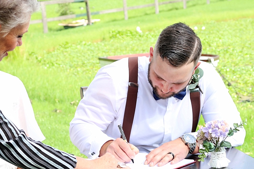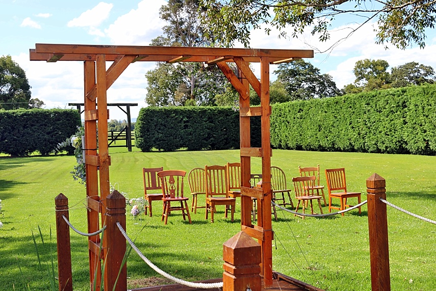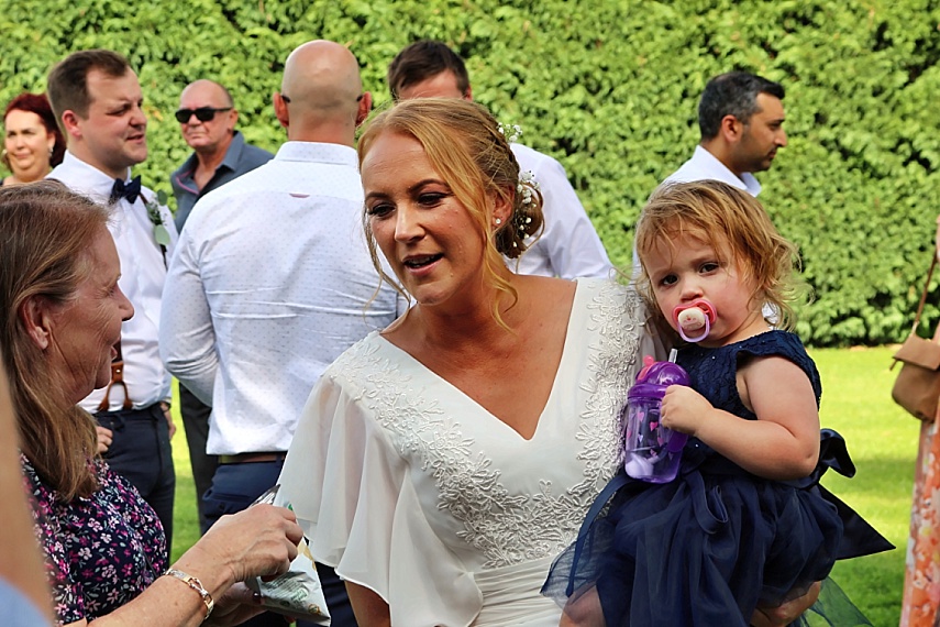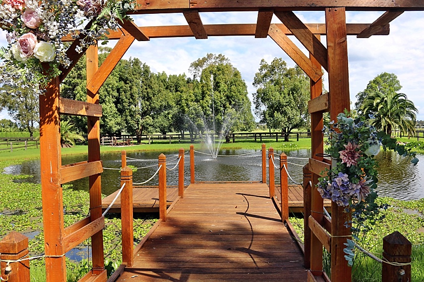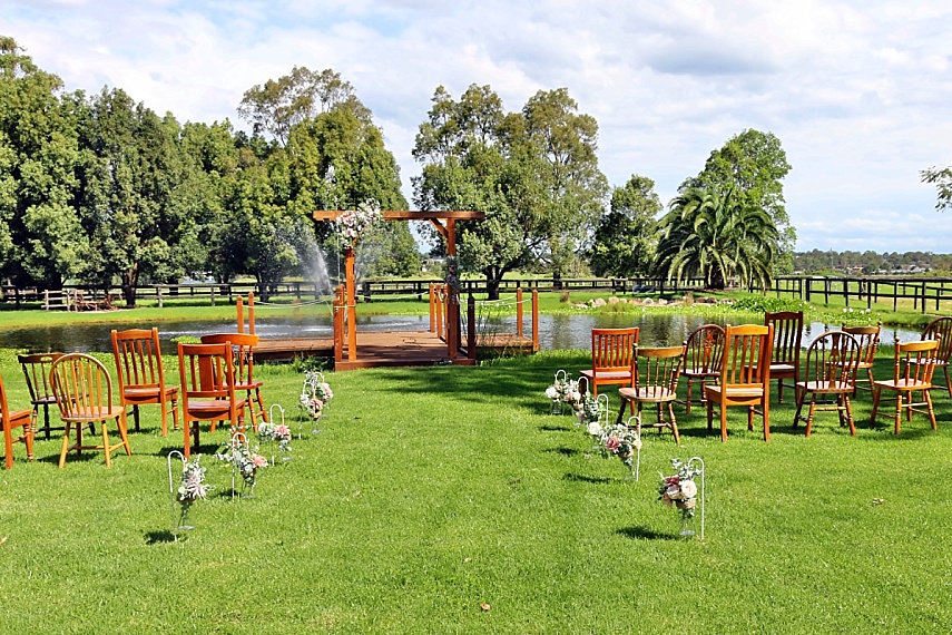 The location of the wedding ceremony and reception was Terara Park which is located at Terara on the fertile river flats of the Shoalhaven River three kilometres east of Nowra. With a stunning jetty overhanging the dam, complete with row boat and lush outdoor area made for a very picturesque ceremony. The simple, yet beautiful and meaningful ceremony, officiated by Joanne Novich Marriage Celebrant, celebrated their journey to this point, their love for each other and their shared love for Lyla. Cheers and applause followed as they were pronounced husband and wife!