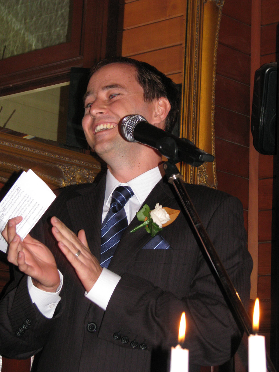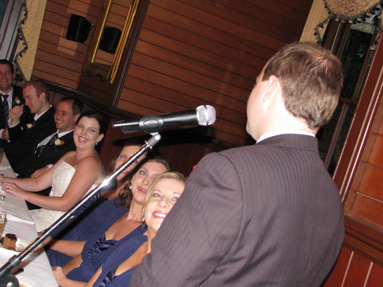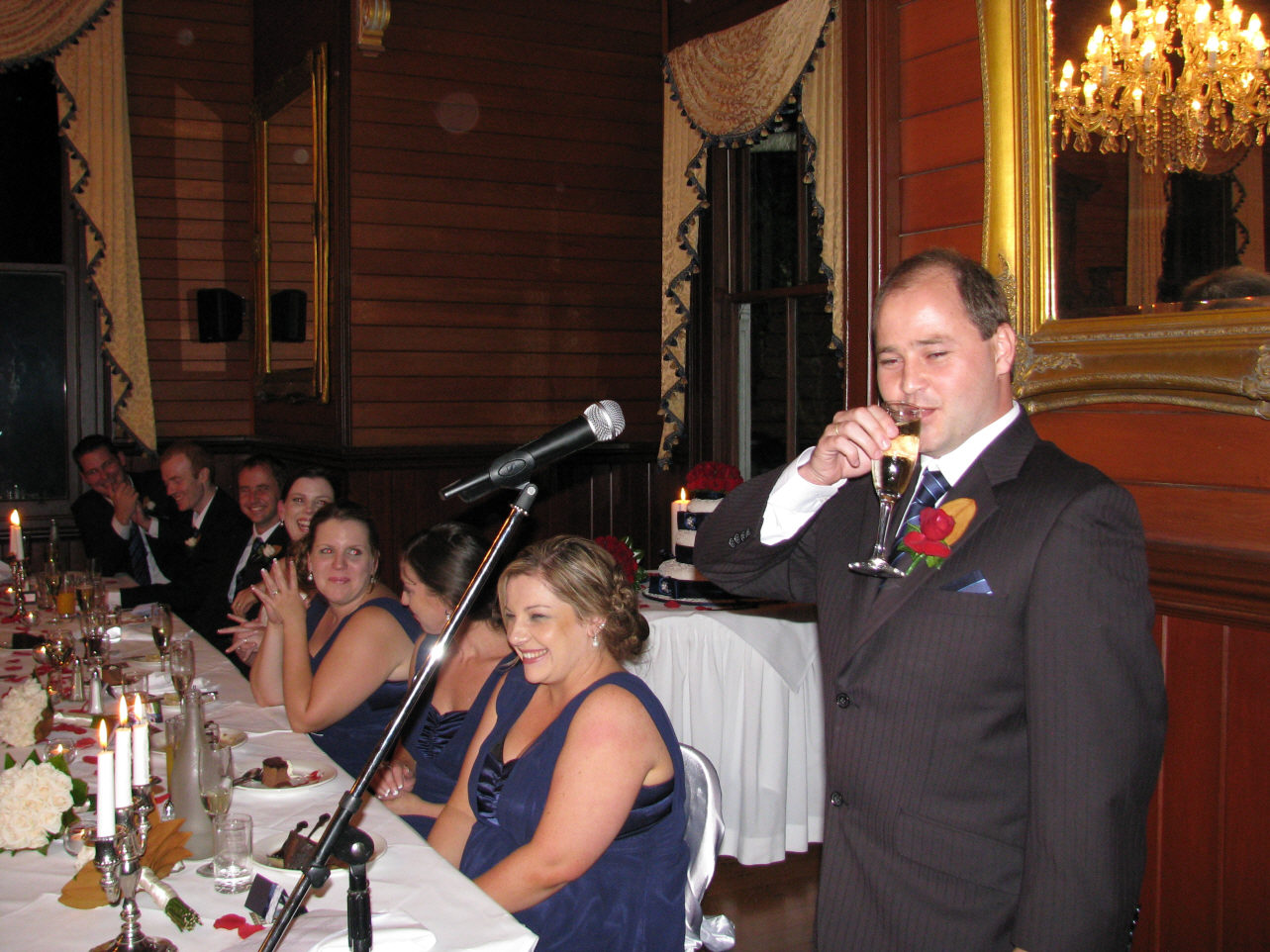 After the meal, we proceeded with the speeches which commenced with Amanda’s dad Jeff, followed by Best Man and Chris’ twin brother, Matthew, then Chris himself and finally, Amanda. During this time, both Chris and Amanda became very emotional, conveying heartfelt messages of love. Beautiful words, two beautiful people, a very deep love for each other and the reason why everybody had come together to celebrate with them. Glancing around the Ballroom, there were many that were touched by this combination of words and open display of emotion. As can be seen in the photographs below, Chris even needed to grab a drink on a number of occasions in order to regain his composure. Definitely one of the highlights of the evening for me.
