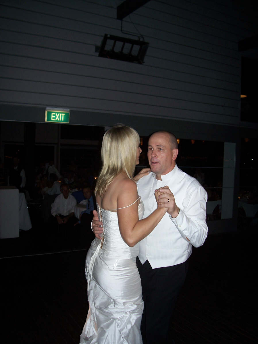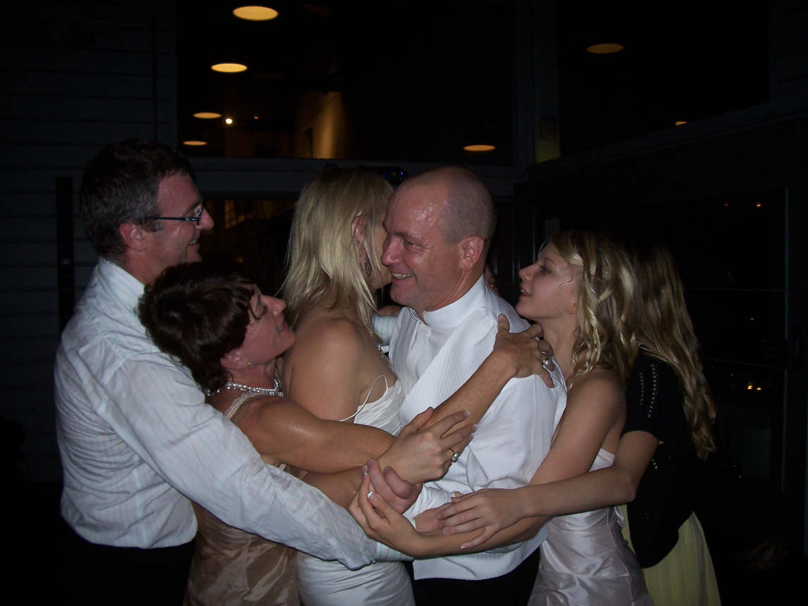 As can be seen below, whilst dancing Melanie & Rod were joined by daughters and friends – this is one way numerous guests can dance with the bride and groom, all at the same time! In the other photograph, Rod & Melanie – looking very happy indeed.