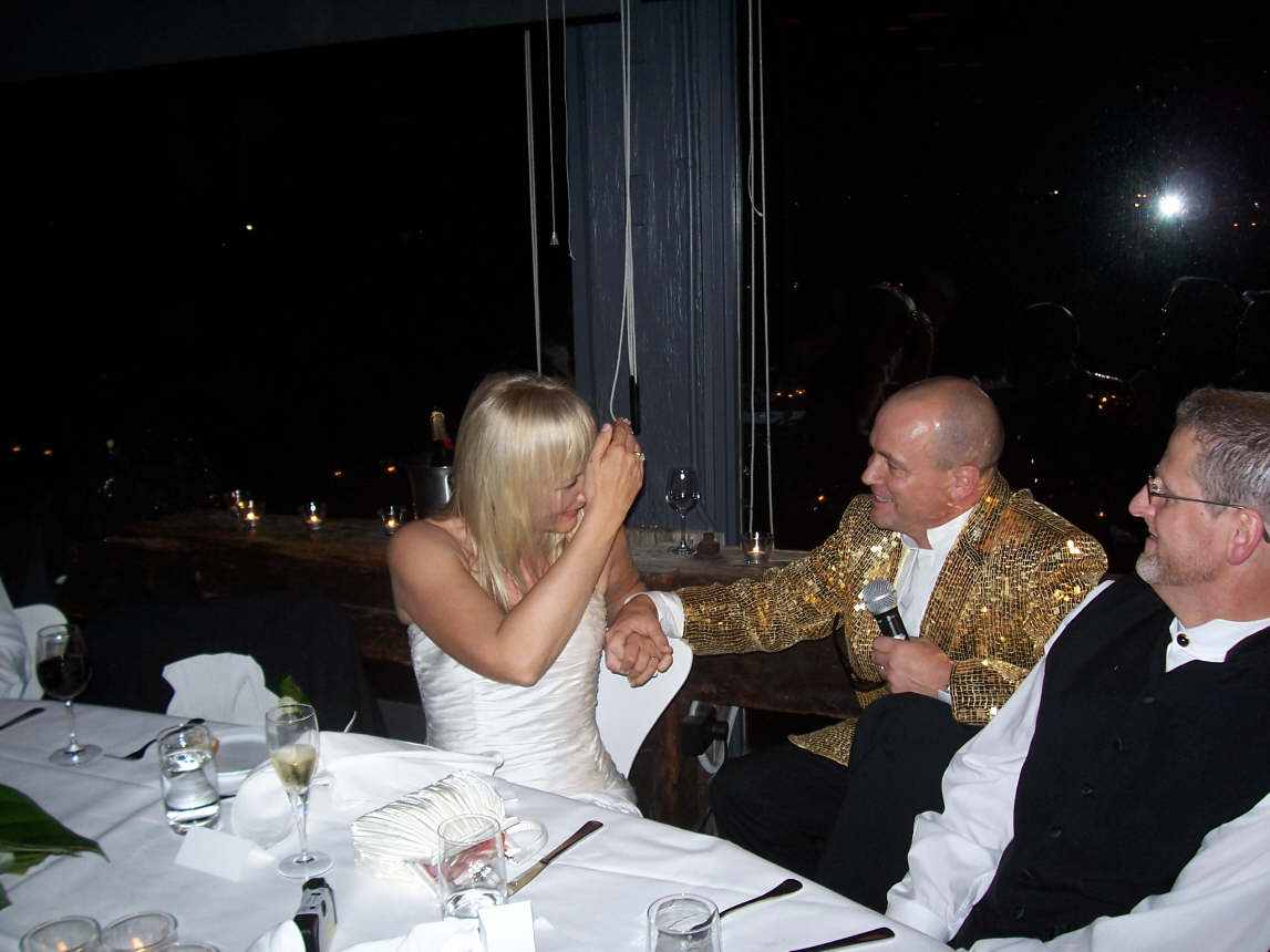 When Rod first contacted me he made mention that he had a special surprise for Melanie (and the guests of course) in that he had secured the services of The Three Waiters. I have had the opportunity to work with this show before on numerous occasions so knew how it all worked. For those that are not aware, The Three Waiters show involves three singing waiters hiding in plain sight at the event before unleashing a dynamic and sophisticated live performance a la The Three Tenors! Dressed and behaving exactly like the other staff, they greet guests on arrival – perhaps offering them a pre-dinner drink, finger food, a bread roll or directions to the cloak room. At no time do guests realise they are Singing Waiters – until the finale! Everyone was very surprised and the act included Rod singing “Can’t Help Falling In Love” to Melanie on bended knee – very romantic indeed (except for the glomesh sparkling Elvis type jacket that Rod wore as part of the show).