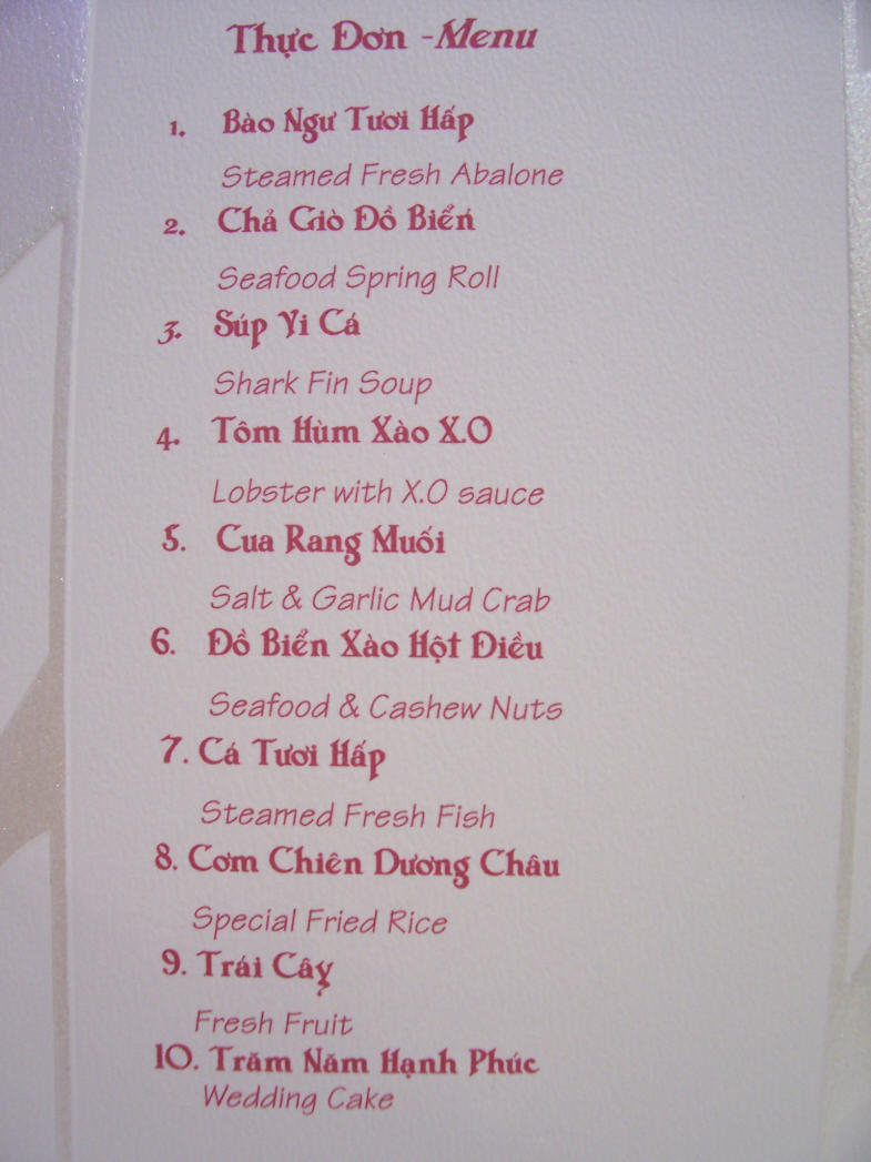 Anh Kim and Stephen are a lovely couple who were very happy and had a smile on their faces all night. The reception followed traditional Vietnamese wedding etiquette with some western influences. Guests were treated to a lovely ten course, predominately seafood, banquet.